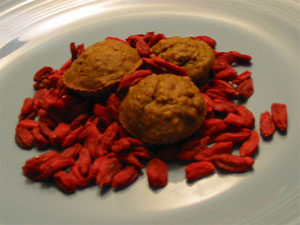 Organic Cakes: Goji Berry Hemp *High In Antioxidants Yummy organic goji berry hempseed treats in the shape of little cupcakes. Like all of our Cakes these yummy organic treats are in the shape of little cupcakes and are made to order. They make a wonderful gift!. Ingredients: Organic Oat Flour, Organic Oat Bran, Organic Goji Berries, Organic Apples AND/OR Organic Unsweetened Apple Sauce, Organic Hempseeds, Organic Peanut Butter (no hydrogenated oils), Organic Free Range Chicken Eggs, Local Honey, Aluminum Free Baking Soda, Organic Pure Vanilla Extract |